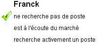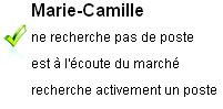 Vous trouverez ci-dessous nos deux CV actualisés (au format PDF), ainsi que nos positions respectives par rapport au marché du travail.